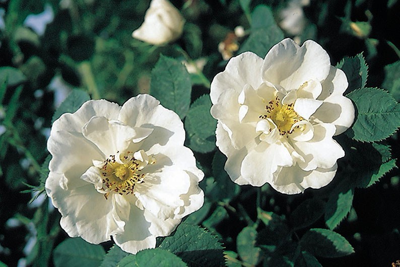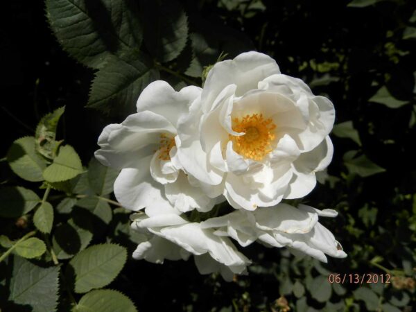 Si tratta di una rosa antica bella e raffinata caratterizzata da mazzi di fiori grandi e piatti, quasi semplici, bianco latte con stami dorati.
