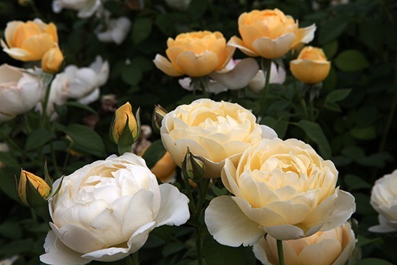 Rosa da collezione inglese caratterizzata da fiori di forma molto elegante, dalla dimensione media e di un colore giallo delicato.
