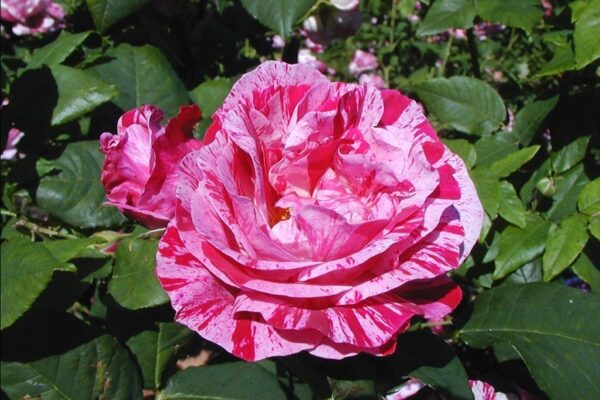 Si tratta di una delle rose più belle e affascinanti tra quelle screziate. Oltre a questo, nonostante si tratti di una rosa antica, ripete la fioritura durante la stagione.
