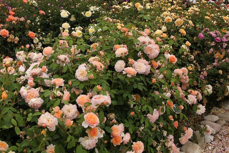 “Grace” è un’ottima varietà di rosa inglese caratterizzata da fiori color albicocca, più scuri al centro e gradualmente sfumati verso l’esterno. Questo colore si armonizza alla perfezione con altre tonalità, in particolare con il rossa intenso e il porpora.