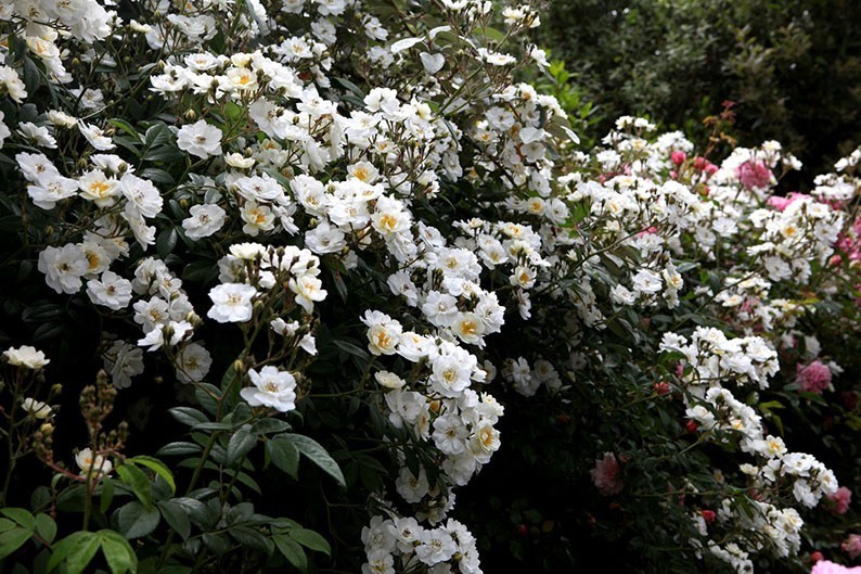 Rosa Sarmentosa che si sviluppa in modo molto vigoroso. Presenta fiori semidoppi bianchi forgiati a “coppa”. Man mano che i fiori si aprono, gli stami gialli diventano rapidamente marroni.