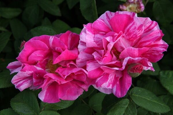 Si tratta di una rosa che è la mutazione della rosa gallica officinalis ma presenta un portamento più morbido ed arcuato. Presenta inoltre rami che si espandono fino a 1.5 m.