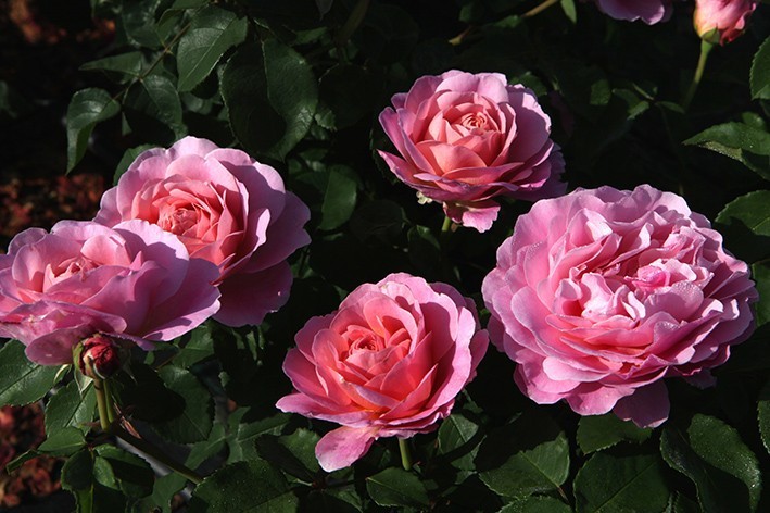 Rosa estremamente bella caratterizzata da fiori che hanno colori e forme che variano in base allo stadio di fioritura. Inizialmente i boccioli sono di un brillante rosa albicocca e, con il passare del tempo, assume tonalità rosa-lilla. I petali delicatamente increspati sono sorretti da steli che hanno una colorazione sfumata di rosso. Nei primi giorni, i fiori sono forgiati a “coppa poco profonda” ma, man mano che si aprono, assumono la forma di “rosetta piena”.