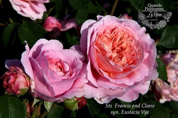 Sts. Francis and Claire è una rosa che ha l’intento di onorare i Santi Francesco e Chiara di Assisi. Tuttavia, nasce con il nome di “Eustacia Vye”: nome dell’eroina imperfetta di Thomas Hardy nel “Il ritorno del Nativo”.